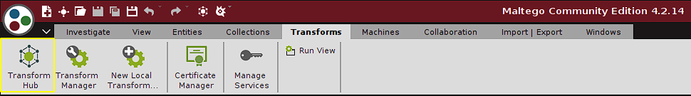 To install transforms, Maltego has a section called transform hub: