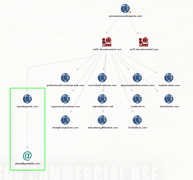 jamibgoode.com and run the To Email Address [from whois info] transform To Domains [Sharing this NS] We see that in this way we manage to list the email that is specified in the: