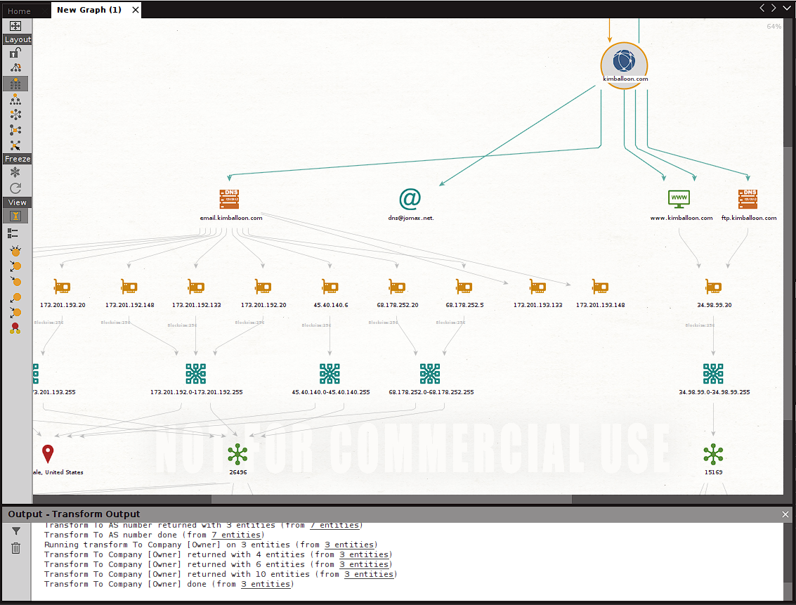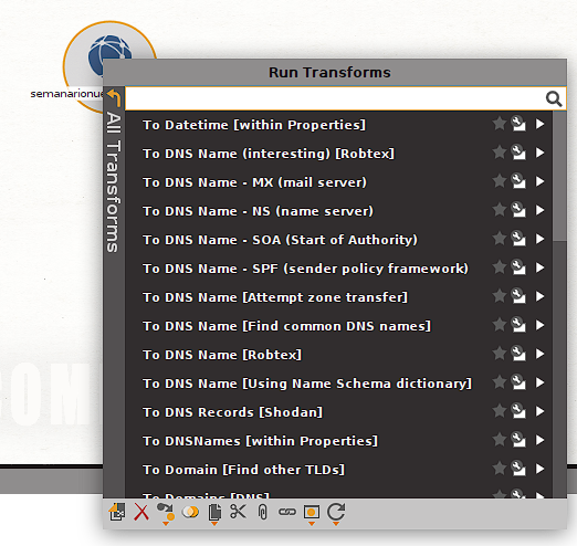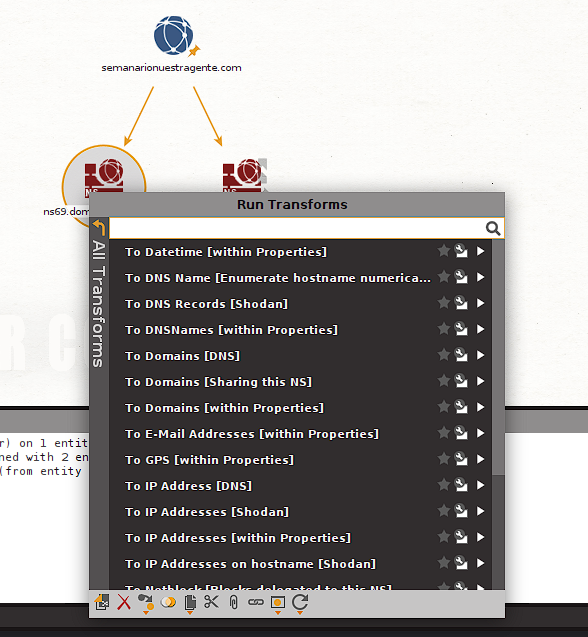 We see that in this case the footprinting performed generates in our canvas a considerable number of new entities of varied types. Each of which allows us to continue using transforms additional to try to obtain information and additional details that we can then collect to have as complete a picture as possible of our target.