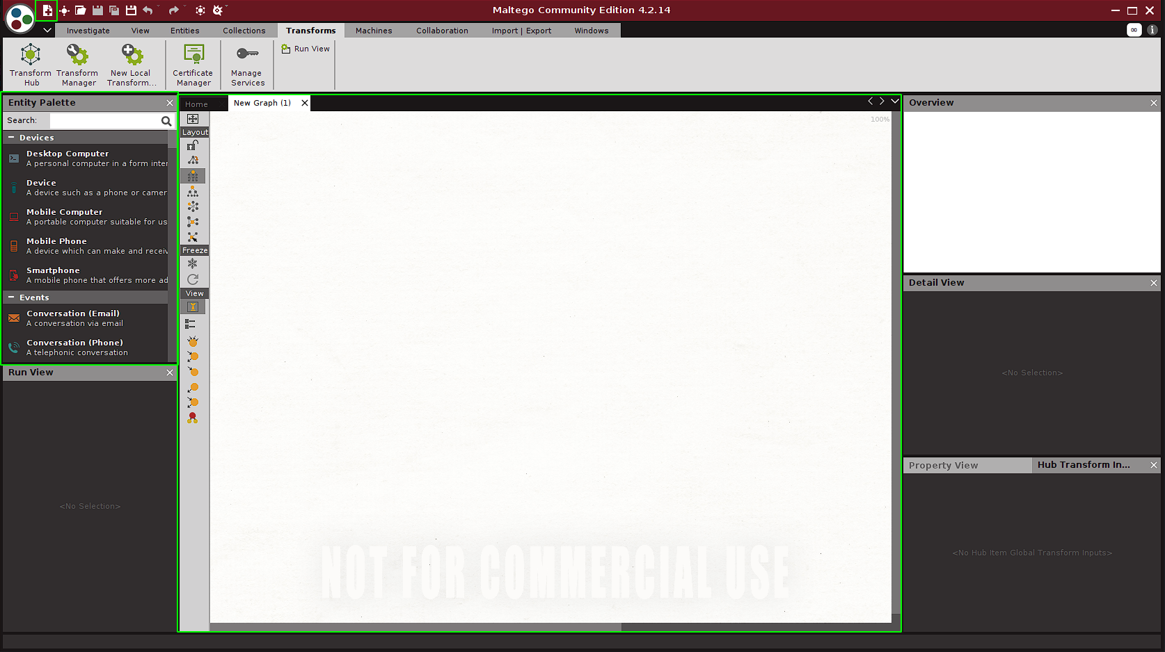 To start we generate a new graph from the Maltego menu: