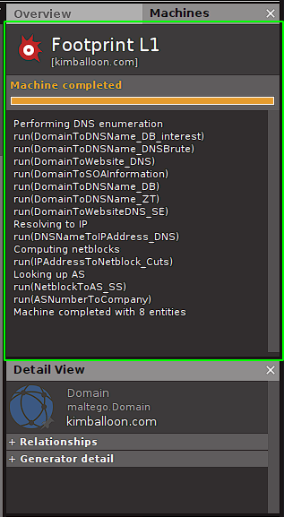 In the community version of Maltego the functionality and power of these machines is limited.